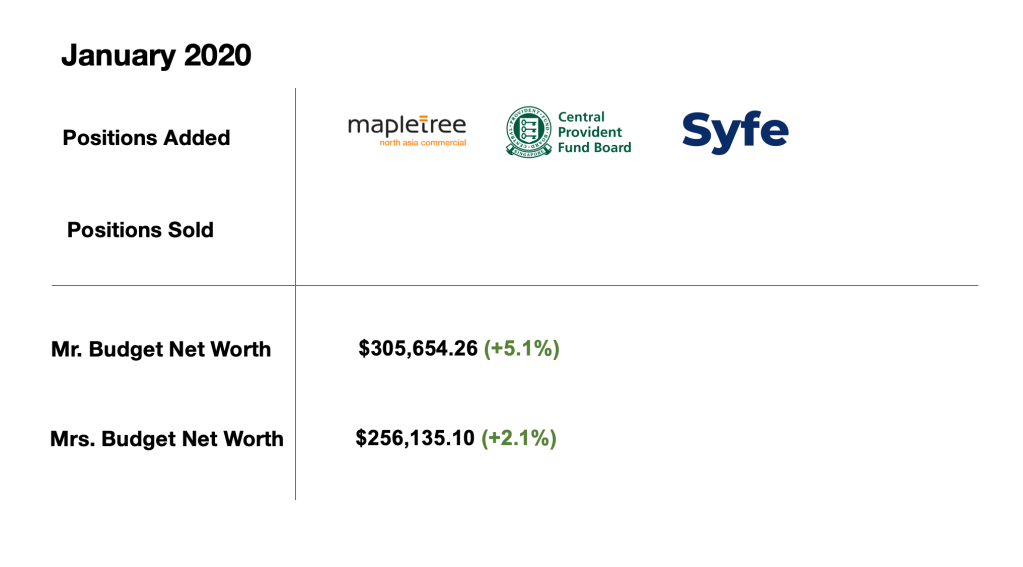For now, the Wuhan virus outbreak seems to be getting worse every day, and things will be worse before they get any better. We probably won’t be doing anything much next month, and will start to look at some counters in Singapore and Hong Kong once things have stabilise a bit.