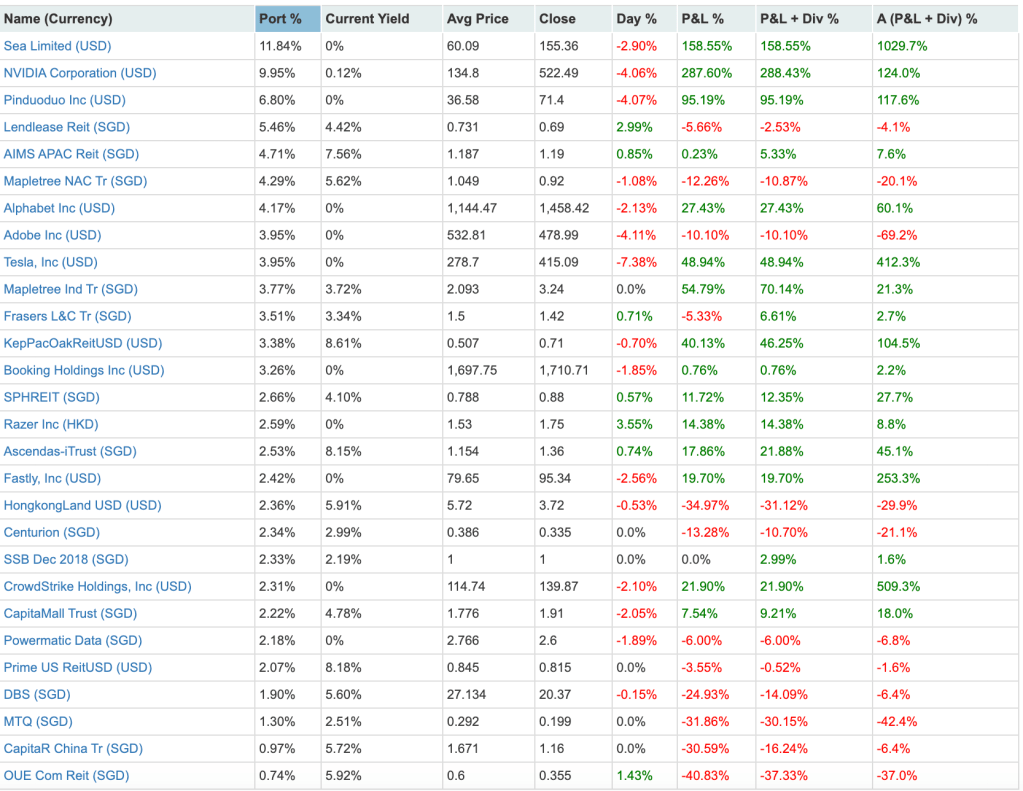 For September, Mr Budget added Adobe into his portfolio, while Mrs Budget added both Amazon and SE into her portfolio. While all these counters are still down at the moment, we believe that in the long term the prices should show a slow and steady upwards climb.