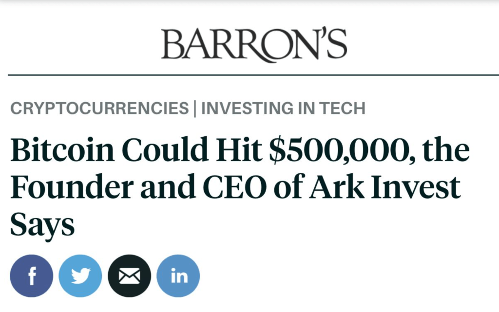On top of that, Ark is also very bullish on Bitcoin, and in the white paper they published few months back, they laid out strong arguments for the case of Bitcoin hitting a $300,000 – $400,000 price target.