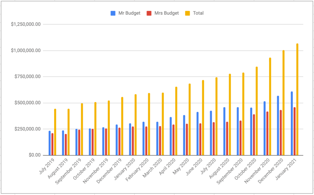 Our combined net worth is now at $1,070,000, including CPF but excluding our property and mortgage. This is up from S$988,000 last month, a change of +S$82,000!