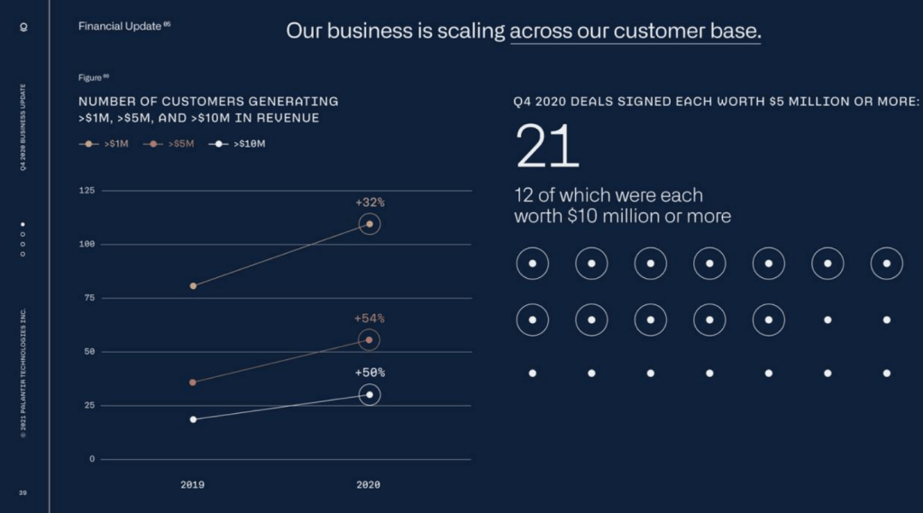 Palantir on the other hand, has technology that is way ahead of its curve, and their customer retention is very high – customers cant move to any other competitors after being exposed to what Palantir can do for them, simply because their technology is unparalleled at this point.