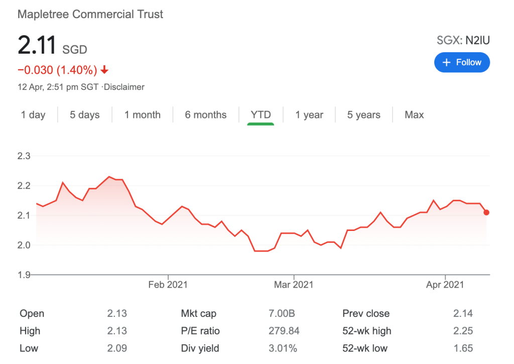 Given the risk of a changing office landscape, I’m not sure the returns of commercial reits are that enticing anymore to reward investors – the dividend yield for MCT and CICT is only at 2-4% PA. For these commercial reits to continue growing, it has to borrow money to acquire more buildings – and with interest rates climbing, it will put some downward pressure on the prices.